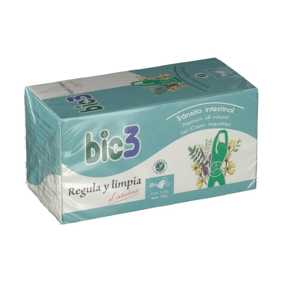 Bie3 regula y limpia el intestino 25 filtros Bie3 laxante natural compuesto por 25 bolsitas de doble filtro sin grapa metálica de 1,5 gr. Bie3 laxante natural está compuesto por variedades de cassias hidues, tradiocional laxante natural.